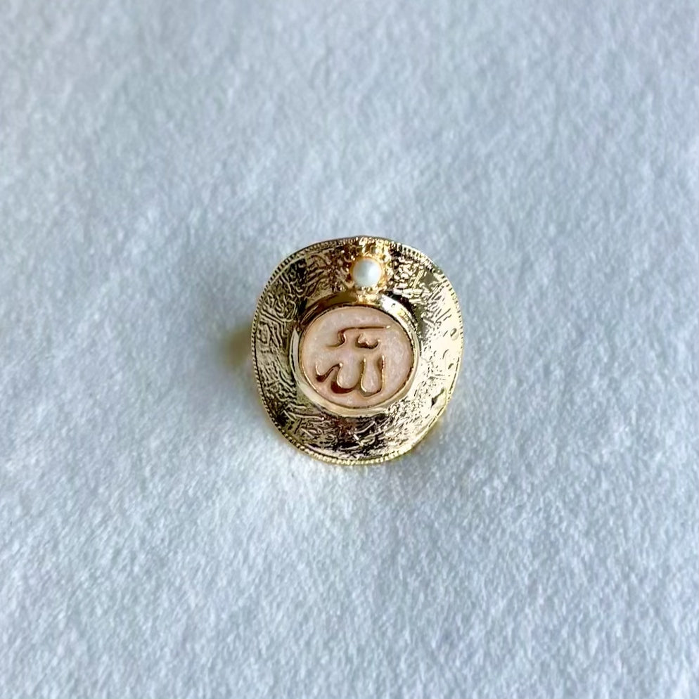 This stunning Vintage Round Ring is designed with an eye-catching 'Allah' motif. Crafted from high-quality material, it is sure to stand the test of time, making it a timeless piece for any jewelry collection.