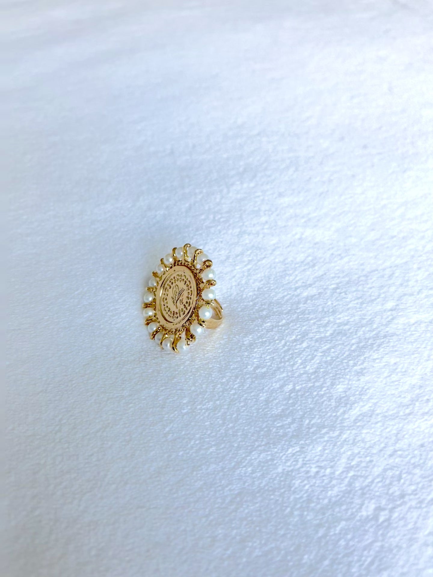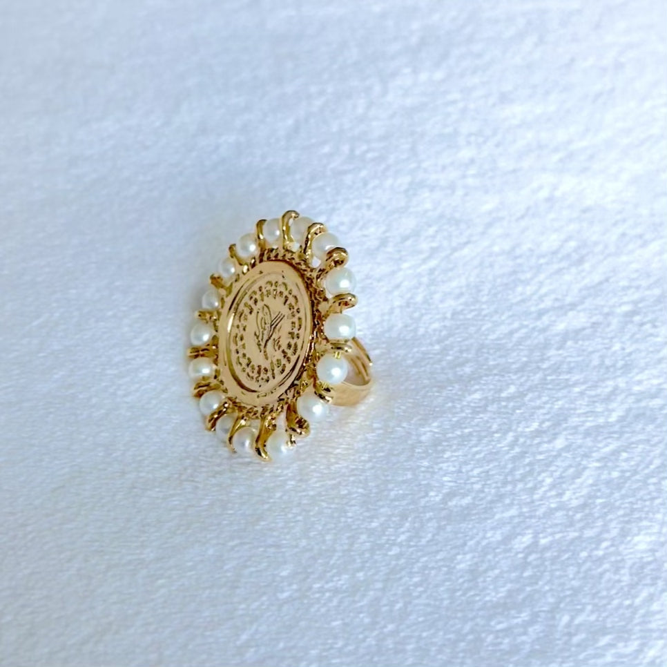 Indulge in ultimate luxury with our Golden Pearl Ring Large. Crafted with a stunning golden pearl, this ring exudes elegance and sophistication. Elevate any outfit with its timeless beauty and exquisite design. Make a statement that is both opulent and refined.