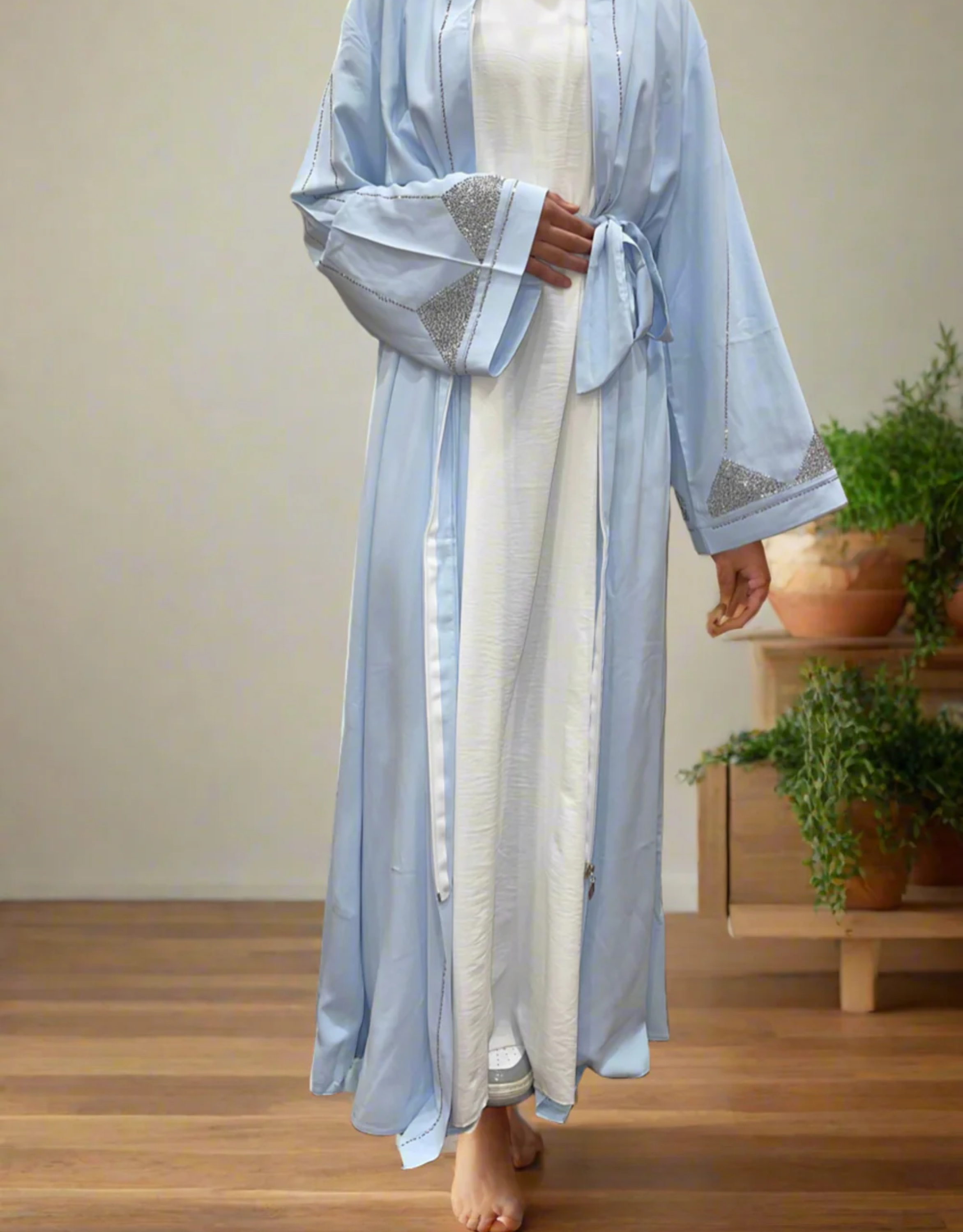 Mint Pearl Abaya – Handmade Elegance